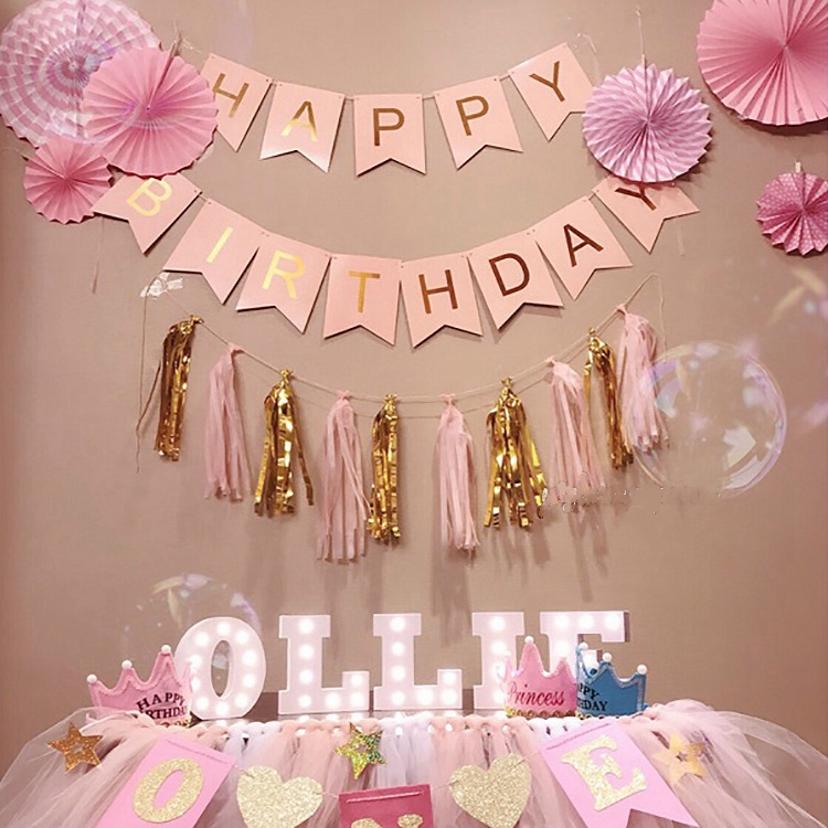 1set Happy Birthday Banner Paper Flags Bunting Banners Diy Kids Birthday Party Decoration Party Needs Shopee Philippines